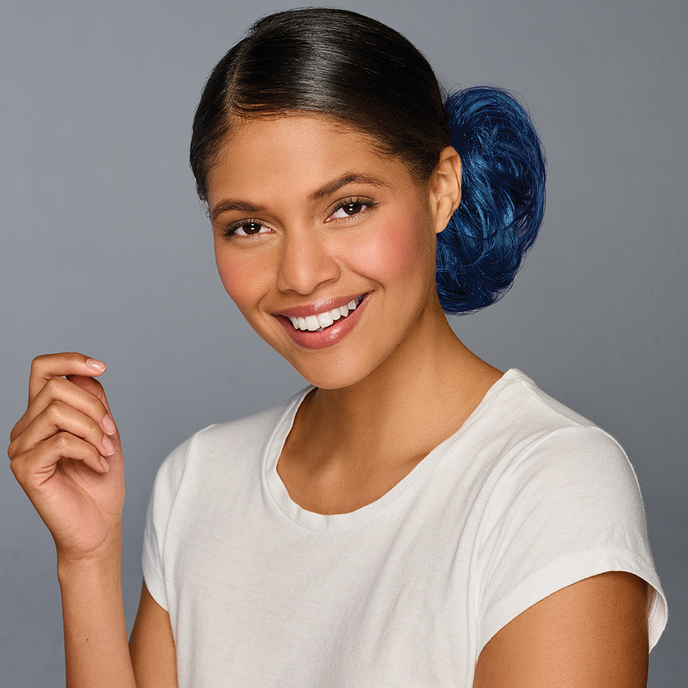 The clip on this extension is small so I recommend either spraying your root with hairspray before clipping it in or teasing your root to make it feel more secure. Place them closer to the front and trim them into bangs, layers, or shorter haircuts. Place the extensions next to each other to create block highlights or place one color on each side of the front for a fan-tastic look. Do not use heat to style these extensions.