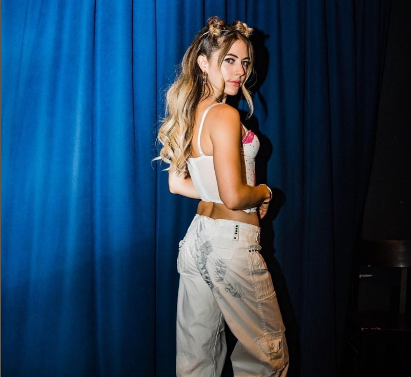 Woman wearing Top Beach Waves Topper in Golden Wheat - View from the front